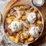 While the casserole bakes, whip together cold heavy cream with vanilla bean paste and a touch of pure maple syrup until soft peaks form. This whipped cream is a game-changer and beautifully balances the sweet, spiced casserole underneath. I always keep a batch ready because it turns every bite into a luxurious treat.