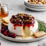 A simple and elegant baked Brie recipe topped with tangy cranberry sauce and crunchy pistachios, perfect for a festive holiday appetizer or any cozy gathering. Ready in under 15 minutes, this warm and melty cheese dish is beautifully garnished with fresh herbs and orange zest for an extra burst of flavor.