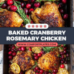 This Baked Cranberry Chicken with Rosemary is a festive and flavorful dish perfect for Thanksgiving dinner. Featuring succulent bone-in, skin-on chicken pieces marinated with garlic, fresh rosemary, and paprika, then seared to golden perfection before baking with a tangy-sweet cranberry topping, celery, onions, and a hint of lemon. The result is a juicy, aromatic chicken with a vibrant cranberry sauce that beautifully balances savory and tart flavors.
