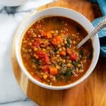 Red lentils cook faster and tend to become mushy, so they won’t hold their shape like brown or green lentils do. If you prefer a smoother soup, red lentils work, but for the best texture, I recommend sticking with brown or green lentils.