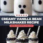 A creamy and festive Boo-nilla Ghost Milkshake that’s perfect for Halloween or any fun occasion. This easy-to-make vanilla bean ice cream milkshake is topped with homemade whipped cream swirls for a spooky, delicious treat.