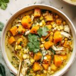 A comforting and flavorful Butternut Squash Green Chile Chicken Soup that combines tender chicken thighs, sweet butternut squash, and mild green chiles simmered with aromatic spices and fresh vegetables. This hearty soup is perfect for a wholesome meal, providing a balance of sweetness, spice, and zest with lime juice and cilantro.
