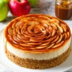 This decadent Caramel Apple Cheesecake recipe combines a buttery graham cracker crust with a spiced apple filling layered under a creamy cinnamon-infused cheesecake. Topped with beautifully arranged thin apple slices dusted with cinnamon sugar and finished with a glossy caramel sauce, this dessert is perfect for fall and special occasions.