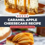 Firm and tart apples like Granny Smith or Honeycrisp work best because they hold their shape during baking and balance the sweetness of the caramel and cheesecake.