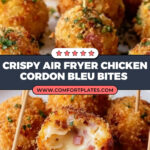 Cordon Bleu Bites are a delicious and easy-to-make appetizer featuring ground chicken, smoked ham, and Swiss cheese, coated with crispy Panko breadcrumbs and perfectly cooked in an air fryer. These bite-sized treats are golden, flavorful, and great for any occasion.