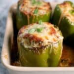 To reheat, I cover the peppers with foil to keep them moist and warm in a 350°F oven for about 20 minutes or until heated through. This keeps the cheese melty without drying the filling or the pepper shell.