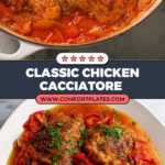 This classic Italian Chicken Cacciatore recipe features bone-in, skin-on chicken simmered in a rich sauce made with tomatoes, red bell peppers, onions, garlic, and herbs. The chicken is browned first for extra flavor, then baked until tender, resulting in a hearty, comforting dish perfect for family dinners.