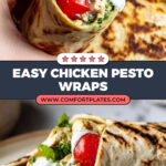 To keep your Chicken Pesto Wraps fresh, don’t over-dress the lettuce and add wet ingredients like tomatoes last when assembling. Wrapping tightly and toasting in a skillet also helps maintain structure and texture when serving.