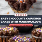 I’m so excited to share this fan-freaking-tastic Chocolate Cauldron Cakes Recipe with you! These rich chocolate cupcakes are filled with a fluffy marshmallow center and topped with a luscious chocolate frosting, then decorated with sprinkles to look like spooky little cauldrons — perfect for any celebration or just a fun treat. Trust me, once you try this recipe, you’ll love how magical and delicious these cakes turn out!