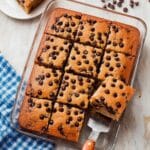Fold in 1¼ cups of the mini chocolate chips to spread that melty goodness throughout. Pour the batter into your prepared pan, smooth the top, then sprinkle the remaining chocolate chips evenly across the surface for a beautiful finish. Pop it in the oven and bake for about 30 minutes. You’ll know it’s done when a toothpick inserted near the center comes out clean or with just a few moist crumbs.
