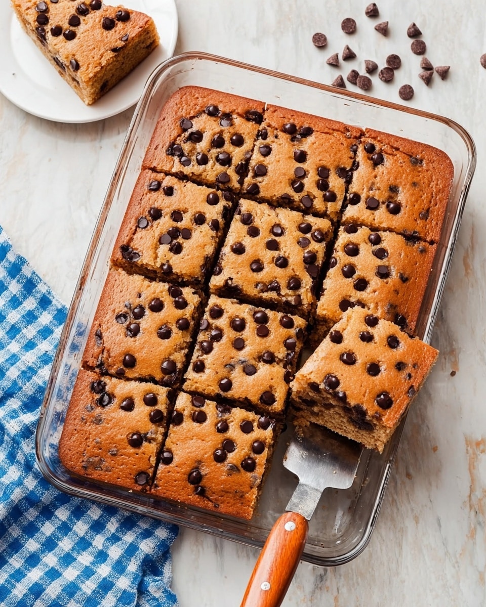 Fold in 1¼ cups of the mini chocolate chips to spread that melty goodness throughout. Pour the batter into your prepared pan, smooth the top, then sprinkle the remaining chocolate chips evenly across the surface for a beautiful finish. Pop it in the oven and bake for about 30 minutes. You’ll know it’s done when a toothpick inserted near the center comes out clean or with just a few moist crumbs.