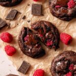 Indulge in these luscious Chocolate Raspberry Cookies featuring a rich brown butter base, a delicate balance of dark and milk chocolates, and fresh raspberries folded into a fudgy, chewy dough. Perfectly baked to achieve crispy edges and a soft, gooey center, these cookies bring a harmonious blend of tart fruitiness and deep chocolate flavor in every bite.