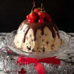 - Serve: When ready to serve, unmold the pudding onto a serving plate. Decorate with chocolate sauce, crushed nuts, and additional maraschino or glacé cherries for a festive and elegant presentation.