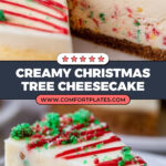 I stick to the classic green sanding sugar and red stripes because they bring that unmistakable Christmas tree vibe, but sometimes I add a few festive sprinkles or edible glitter for extra sparkle when I’m feeling fancy. Fresh cranberries or mint leaves around the plate also look gorgeous and add a nice fresh note to the richness of the cheesecake.