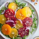 This vibrant Citrus Salad combines a refreshing medley of blood oranges, navel oranges, and grapefruit with peppery arugula, thinly sliced red onion, and crunchy walnuts. Tossed in a tangy lemon-Dijon dressing with a hint of honey, this salad offers a perfect balance of sweet, tart, and savory flavors. Quick to prepare and ideal as a light appetizer or side dish, this salad is both nutritious and visually stunning.