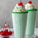 - Serve: Pour the milkshake into the prepared glasses. Top each with a generous swirl of whipped cream and finish with a bright red cherry on top for the classic Shamrock Shake look. Serve immediately for best taste and texture.