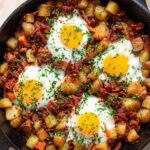 A comforting and hearty Corned Beef Hash and Eggs recipe that combines tender diced potatoes, flavorful corned beef, and vegetables sautéed to crispy perfection, topped with baked eggs for a satisfying breakfast or brunch dish.