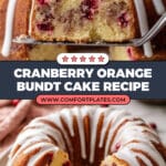 A moist and flavorful Cranberry Orange Bundt Cake featuring a tender crumb with fresh cranberries and a cinnamon-sugar swirl, topped with a zesty orange glaze. Perfect for holiday gatherings or any special occasion, this cake combines the bright citrus notes of orange with the tartness of cranberries for a delightful treat.