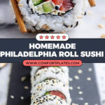 These ingredients create that classic Philadelphia roll vibe—the creamy, silky texture of cream cheese teamed with the smoky richness of salmon and the crisp bite of cucumber, all wrapped in perfectly seasoned sushi rice.