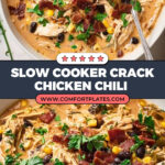 This Slow Cooker Cream Cheese Crack Chicken Chili is a comforting and creamy chili recipe that combines tender shredded chicken with flavorful spices, black beans, corn, and a cheesy cream cheese base. Perfect for a hearty meal that’s easy to prepare, this dish is slow-cooked to perfection and topped with shredded cheddar cheese, bacon bits, and fresh greens for added texture and flavor.