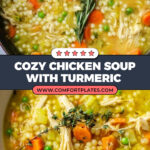 This comforting and flavorful chicken soup features tender chicken, fresh vegetables, and aromatic herbs simmered in a savory broth with pearl couscous. Enhanced with fresh ginger and turmeric, this soup is a delicious and nourishing meal perfect for any day.