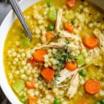 - Simmer Soup: Bring the soup to a boil, then stir in pearl couscous, making sure the chicken is fully submerged by the broth. Reduce heat to medium-low and simmer uncovered for 20-25 minutes until the chicken is fully cooked and couscous is tender.
