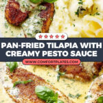 - Combine and Serve: Return the tilapia fillets to the skillet and spoon the creamy pesto sauce over them. Serve immediately over pasta, mashed potatoes, or rice.
