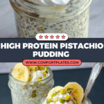 This Creamy High Protein Pistachio Pudding Overnight Oats recipe is a delicious and nutritious make-ahead breakfast option packed with protein and fiber. Featuring rolled oats soaked in almond milk and Greek yogurt, enhanced with instant pistachio pudding mix, chia seeds, and optional protein powder, it offers a rich, creamy texture and satisfying flavor. Perfect for busy mornings, it can be topped with crushed pistachios, fresh fruits, whipped cream, or dark chocolate chips for added indulgence and crunch.