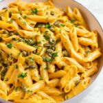 I personally love topping this pasta with fresh chopped parsley for a hint of freshness and color. Throwing on pepitas adds a lovely toasty crunch that contrasts nicely with the creamy sauce. If you want to get fancy, a sprinkle of chili flakes or a drizzle of good olive oil never hurts either.