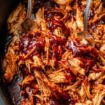 I’ve frozen this crock pot brown sugar bourbon BBQ chicken multiple times, and it holds up perfectly. Just cool it completely, then portion into freezer-safe bags or containers. It thawed quickly in the fridge overnight, and reheated like a charm without losing its tender texture.
