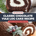 This classic Yule Log Cake, or Bûche de Noël, is a festive and tender chocolate sponge cake rolled with a luscious mascarpone whipped cream filling and finished with a velvety whipped chocolate ganache. Perfect for holiday celebrations, this cake combines a delicate cocoa sponge, smooth mascarpone cream, and rich chocolate ganache decorated with optional sugared cranberries and rosemary for a beautiful, seasonal presentation.