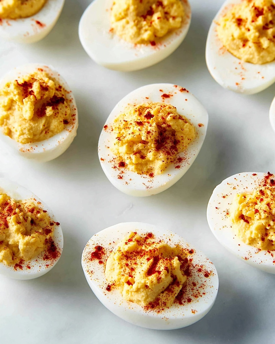 - Fill and serve: Spoon or pipe the yolk mixture into each egg white half, filling the cavities generously. Finish with a light sprinkle of paprika for color and a touch of subtle flavor. Serve immediately or refrigerate until ready to enjoy.