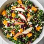 Freezing this salad isn’t ideal because the kale and apples lose their texture when thawed. However, you can freeze cooked quinoa and roasted butternut squash separately if you want to prep ahead. Just thaw and assemble fresh when you’re ready to eat.