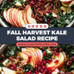 A vibrant and healthy Fall Harvest Honeycrisp Apple and Kale Salad featuring shredded kale, crisp honeycrisp apples, juicy pomegranate arils, toasted pepitas, crispy prosciutto, and creamy feta cheese all tossed in a caramelized shallot fig vinaigrette. This seasonal salad balances sweet, savory, and tangy flavors and makes a perfect light meal or side dish during the autumn months.