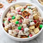 This Gluten-Free Christmas Chex Mix is a festive and delicious snack mix featuring a blend of Rice Chex, Corn Chex, Cheerios, gluten-free pretzels, salted peanuts, and colorful red and green M&Ms, all coated in smooth vanilla white chocolate. Perfect for holiday celebrations, this easy no-bake treat offers a delightful combination of sweet and salty flavors with a crunchy texture that’s sure to be a hit with family and friends.