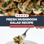 This mushroom salad pairs wonderfully with grilled chicken or fish for a light dinner. It’s also great alongside crusty bread or as part of a mezze spread with olives, hummus, and roasted veggies. My family goes crazy for it as a fresh complement to heavier mains like lasagna or creamy pastas.