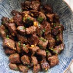 Make sure your pan and oil are very hot before adding dry steak pieces, and don’t overcrowd the pan. Let the steak cook undisturbed for at least 2 minutes before stirring to develop that golden crust.