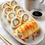- Batter and Deep Fry: Using leftover shrimp tempura batter, dip each sushi roll into the batter to coat evenly. Carefully place the coated rolls into the preheated oil and deep fry for 2-3 minutes, turning the rolls continuously until they turn golden brown on all sides. Remove and drain on paper towels.