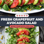 This refreshing Grapefruit and Avocado Salad combines peppery arugula, sweet and tangy ruby red grapefruit segments, creamy ripe avocados, crunchy pistachios, and delicate microgreens, all dressed with a drizzle of olive oil and a sprinkle of Maldon sea salt. Perfect as a light lunch or a vibrant side dish, this salad bursts with fresh flavors and textures that delight the palate.