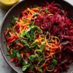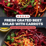 A vibrant and refreshing Grated Beet Salad featuring fresh beets, carrot, and a zesty, tangy dressing made with sherry vinegar, Dijon mustard, and herbs. This no-cook salad is perfect as a light side dish or healthy snack, packed with bright flavors and colorful ingredients.