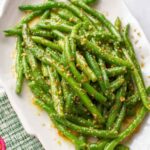 Freezing this dish isn’t my top recommendation because the butter sauce can separate and the beans lose their bright color and crispness. However, if you do freeze them, flash freeze the beans first without sauce, then add the sauce after thawing and reheating for better texture retention.