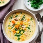 This creamy and comforting Turkey Corn Chowder is a delightful way to transform leftover turkey into a hearty, one-pot meal. Packed with tender turkey, sweet corn, carrots, potatoes, and rich cream, this chowder offers a perfect balance of flavors and textures. Ideal for quick weeknight dinners or cozy lunches, it requires minimal prep and cooks in just 30 minutes, making it both convenient and satisfying.