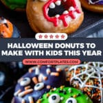 I love arranging these donuts on a black cake stand or a Halloween-themed platter with faux spider webs and small pumpkins scattered around. Another hit is presenting each donut on a mini paper plate with Halloween motifs or inside cupcake liners for easy grab-and-go treats at parties.