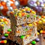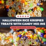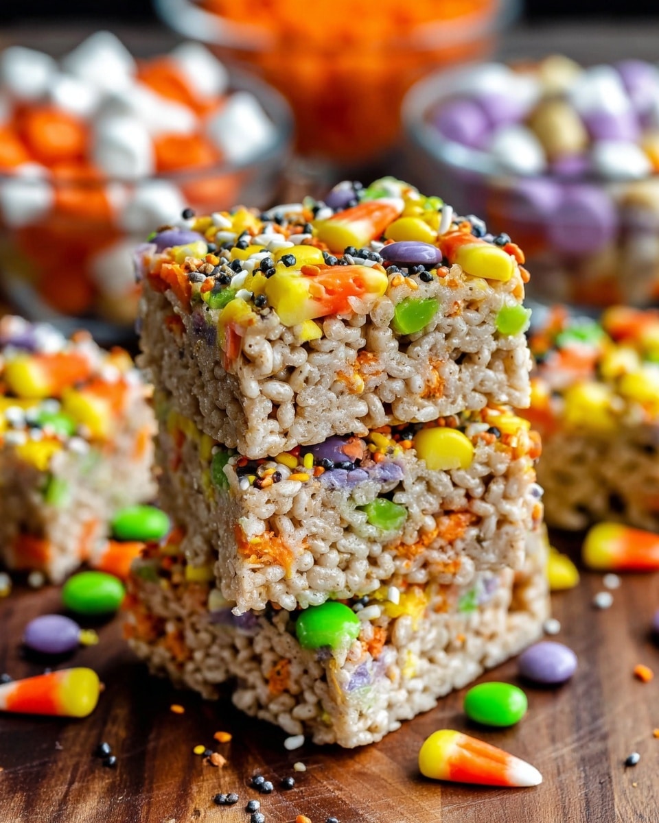 These festive Halloween Rice Krispies Treats are a fun and colorful twist on a classic dessert, perfect for Halloween parties and celebrations. Made with gooey marshmallows, crispy rice cereal, and loaded with Halloween-themed candies and sprinkles, they are as delicious as they are visually appealing.