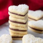 Heart Alfajores are delicate, tender sandwich cookies filled with creamy dulce de leche and coated with desiccated coconut. These sweet treats, shaped like charming hearts, combine a lightly sweetened buttery dough with the rich caramel flavor of dulce de leche, perfect for sharing on special occasions or as a delightful everyday indulgence.