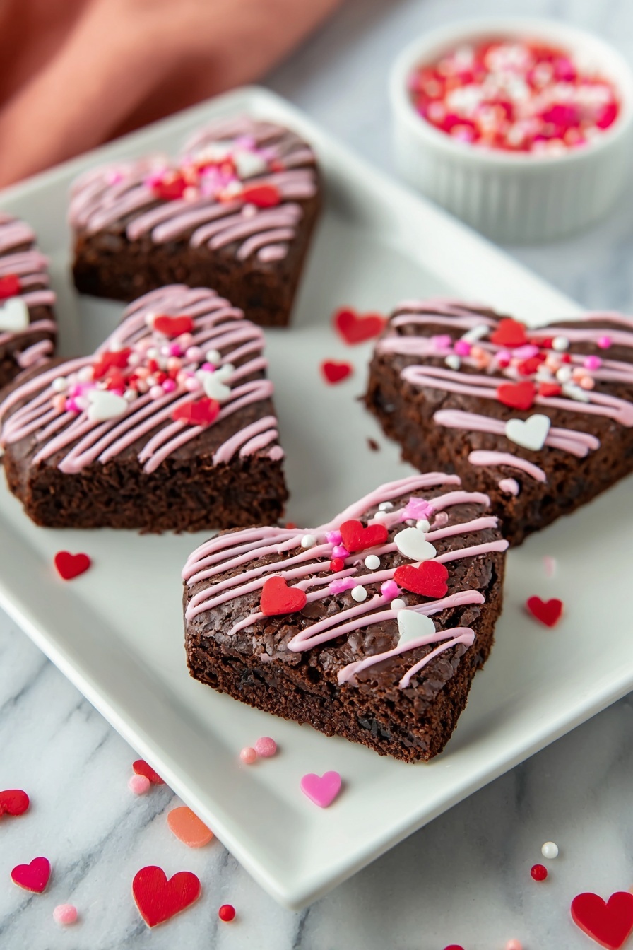 I love dusting these heart-shaped brownies with powdered sugar—it makes them look like little gifts! Another favorite is drizzling melted white chocolate or even a thin stream of raspberry sauce for a fancy touch. Sprinkles or edible glitter are fun if you’re making them for a party or kids’ treats.