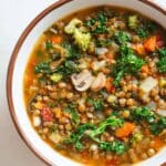 Absolutely! While brown or green lentils hold their shape nicely in this soup, you can also use red or yellow lentils if you like a softer, more porridge-like texture. Just keep in mind that these softer lentils cook faster and might break down more during simmering.