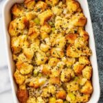 If you want to freeze this Homemade Stuffing Recipe with Sage and Herbs Recipe, make sure it’s completely cooled before packing it in a freezer-safe container. I freeze portions separated with parchment paper for easy thawing. It lasts up to 3 months and still tastes fresh when baked or reheated gently.