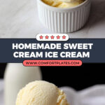 A rich and creamy sweet cream ice cream recipe offering two delicious variations: a classic version with simple ingredients for a firm texture, and a Cold Stone copycat version that includes corn syrup and cornstarch for a softer, creamier consistency. Perfect for homemade ice cream lovers wanting to customize sweetness and texture.