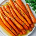 I almost always garnish mine with freshly chopped parsley for a pop of color and freshness. Rosemary also works wonderfully if you’re after an earthy, woodsy herb note — just sprinkle a little right before serving so it doesn’t overpower the carrots.